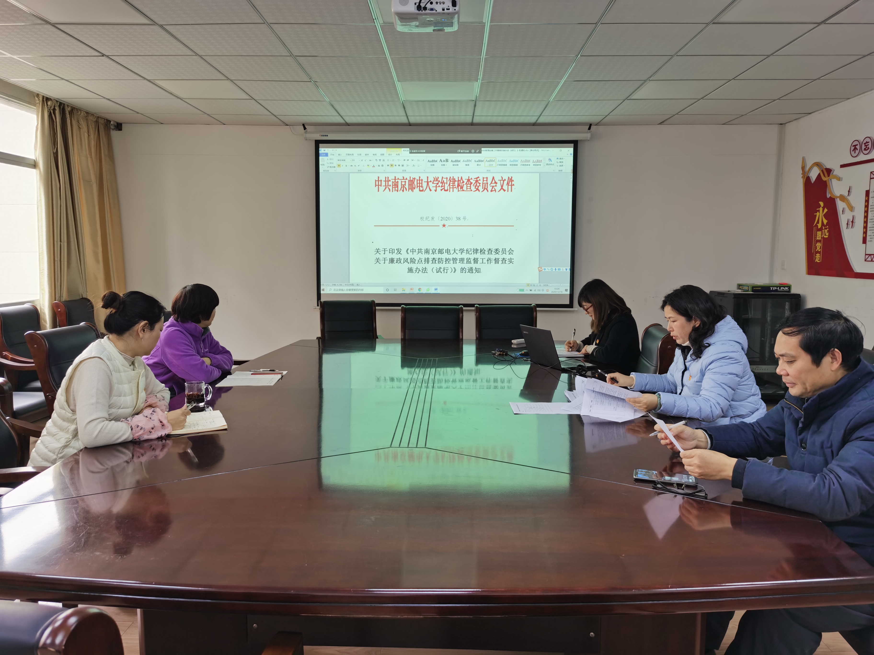 严英同志传达了《中共太阳成集团122ccvip委员会关于廉政风险点排查防控管理监督工作的实施办法(试行)》(党委发〔2020〕71号)文件精神,详细解读了《中共太阳成集团122ccvip纪律检查委员会关于廉政风险点排查防控管理监督工作督查实施办法(试行)》(校纪发〔2020〕38号)和《中共太阳成集团122ccvip纪律检查委员会关于政治生态监测评估工作实施办法(试行)》(校纪发〔2020〕37号)。