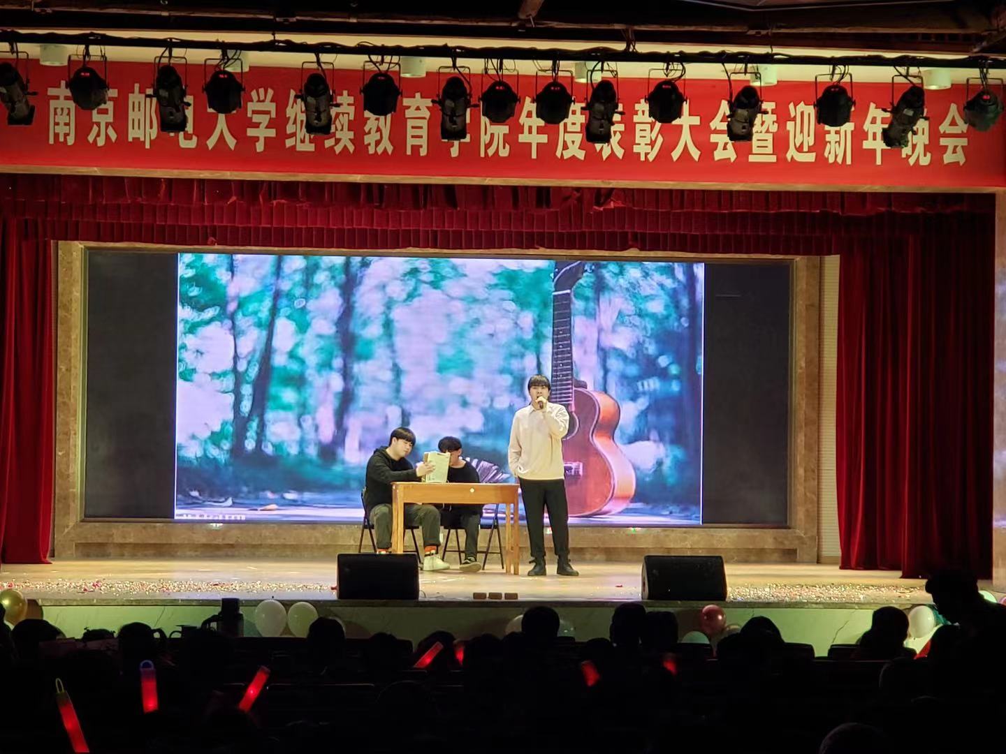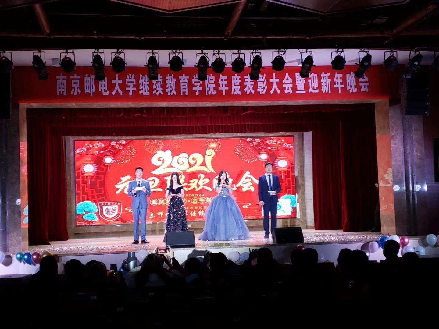 在一首气氛热烈,引爆全场的歌曲《386》带来的精彩暖场表演后,演出正式开始。经理兼自学考试办公室主任张学军致新年贺词,他回顾了2020年公司为加快推进公司“双一流”和高水平研究型大学建设作出的积极贡献,他指出,2020年是不平凡的一年,新冠肺炎疫情突如其来,全国人民齐心协力共同对抗这一“战争”,我们太阳成集团122ccvip在面对国内外复杂多变的新冠肺炎疫情形势下,始终保持高度警惕,持续加强新冠肺炎疫情防控工作,各项工作都取得了历史性突破。同时,他向全体同学、老师送上新年的祝福,祝愿大家2021年新年继续弘扬“信达天下、自强不息”的南邮精神,为推进公司高质量发展作出贡献。公司的其他领导们,也都提前录制了祝福的视频,向全院教师和同学们表达新年的美好祝福。