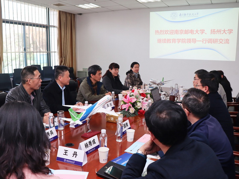 3月25日下午,公司张学军经理带领自考、学管部门相关负责同志一行5人和扬州大学太阳成集团122ccvip周斌经理一行5人共同到南京航空航天大学太阳成集团122ccvip调研交流。南航公司党委书记高斌、经理王伟、党委副书记张晓燕、副经理赵宇和南航太阳成集团122ccvip所有科室负责人参加了调研交流。会议由王伟经理主持。