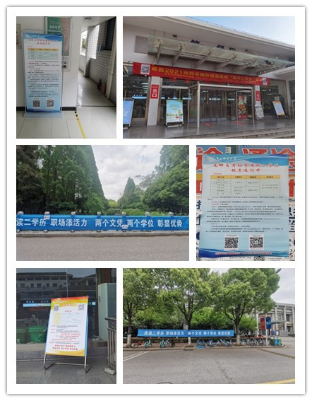 本次二学历招生工作项目组群策群力,拓展宣传渠道。充分利用校主页、教务处网站、图书馆电子屏和融媒体等渠道推送招生简章;在宿舍、食堂、操场等区域挂横幅、贴海报;制作二学历优秀毕业生现身说法的短视屏,让广大同学迅速了解二学历,真切感受到参加二学历的优势。