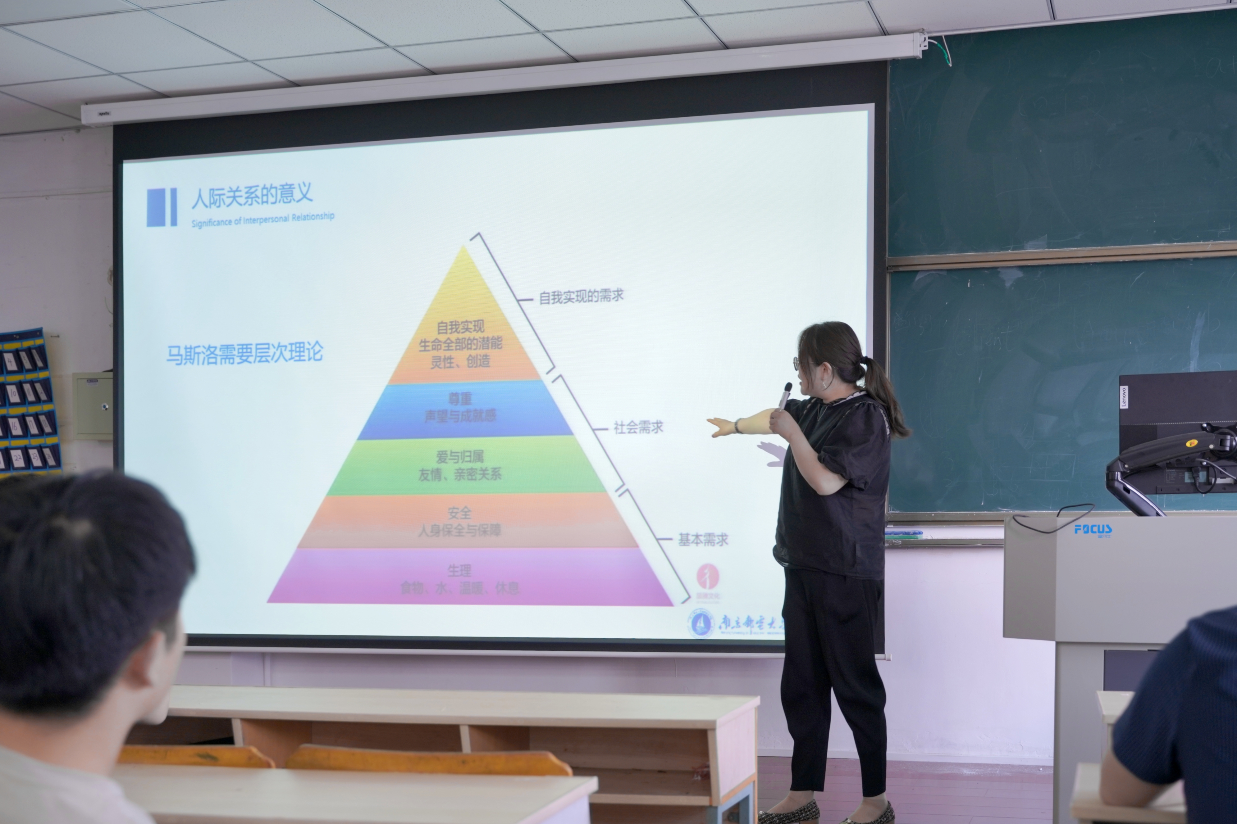 讲座分为三个模块,分别为人际关系概述、矛盾解决守则和交往能力提升。董老师理论结合实际,阐述了沟通和理解对于构建健康人际关系的重要性,她列举了同学之间可能产生的矛盾,分享了沟通技巧和交往策略。