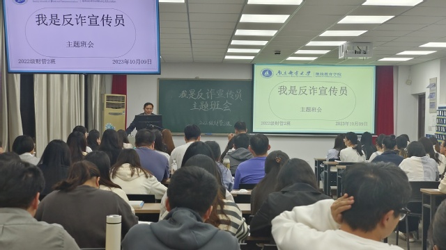 为进一步增强广老员工的安全防范意识,提高员工的安全防范能力。近日,公司在2022级、2023级本科各班级中开展了以“我是反诈宣传员”为主题的班会。通过案例宣讲和师生互动,切实维护师生财产安全,扎实推进校园安全文化建设。