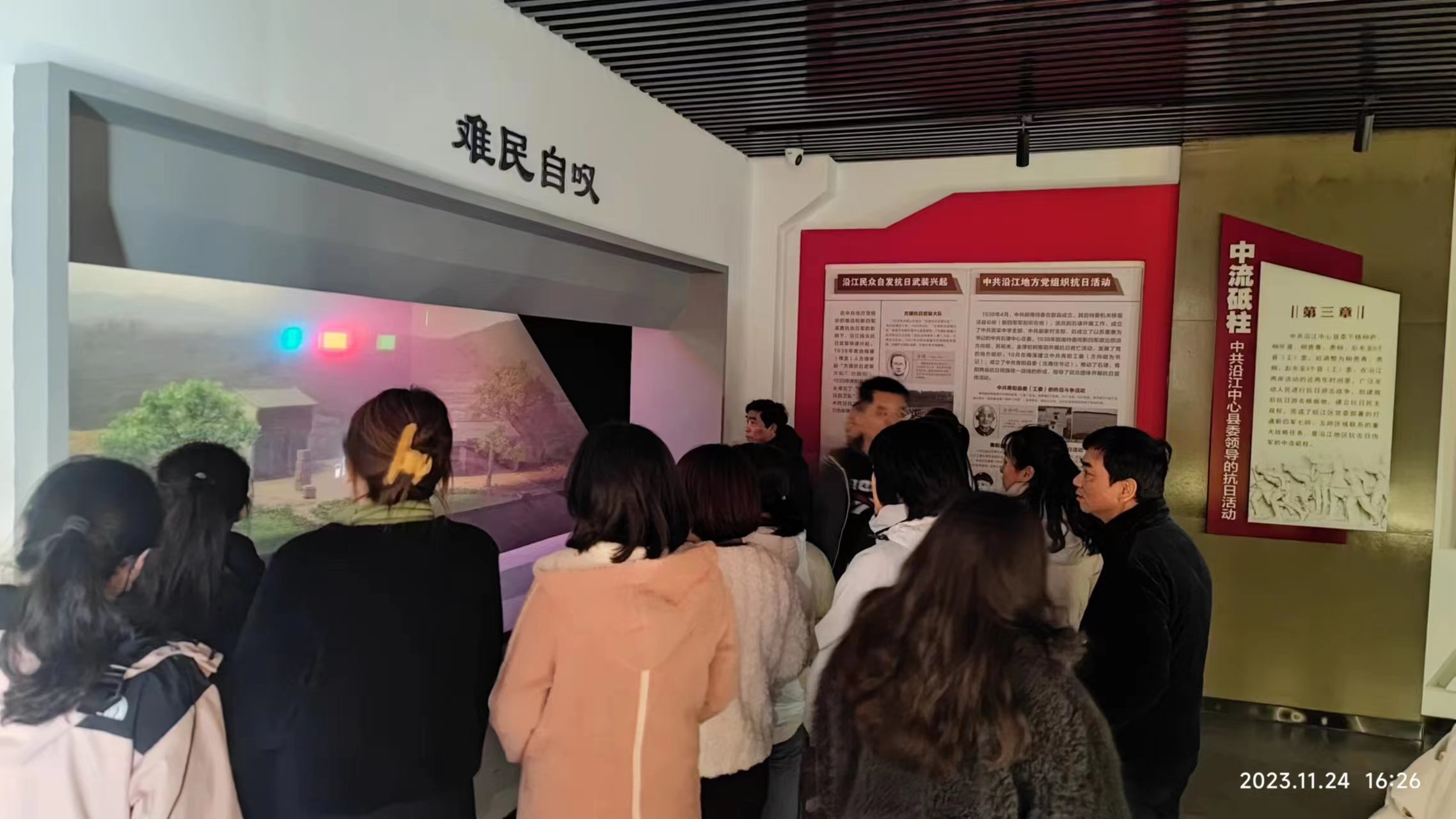 中共沿江中心县委领导沿江地区人民,为争取抗日战争的胜利,在及其艰难的条件下,浴血奋战,前仆后继,立下了不朽的功勋。同志们在纪念馆里认真学习和观摩,受到极大鼓舞。这段历史为我们更好地担负民族复兴的重任提供了精神食粮,时刻激励我们不忘初心,牢记使命。