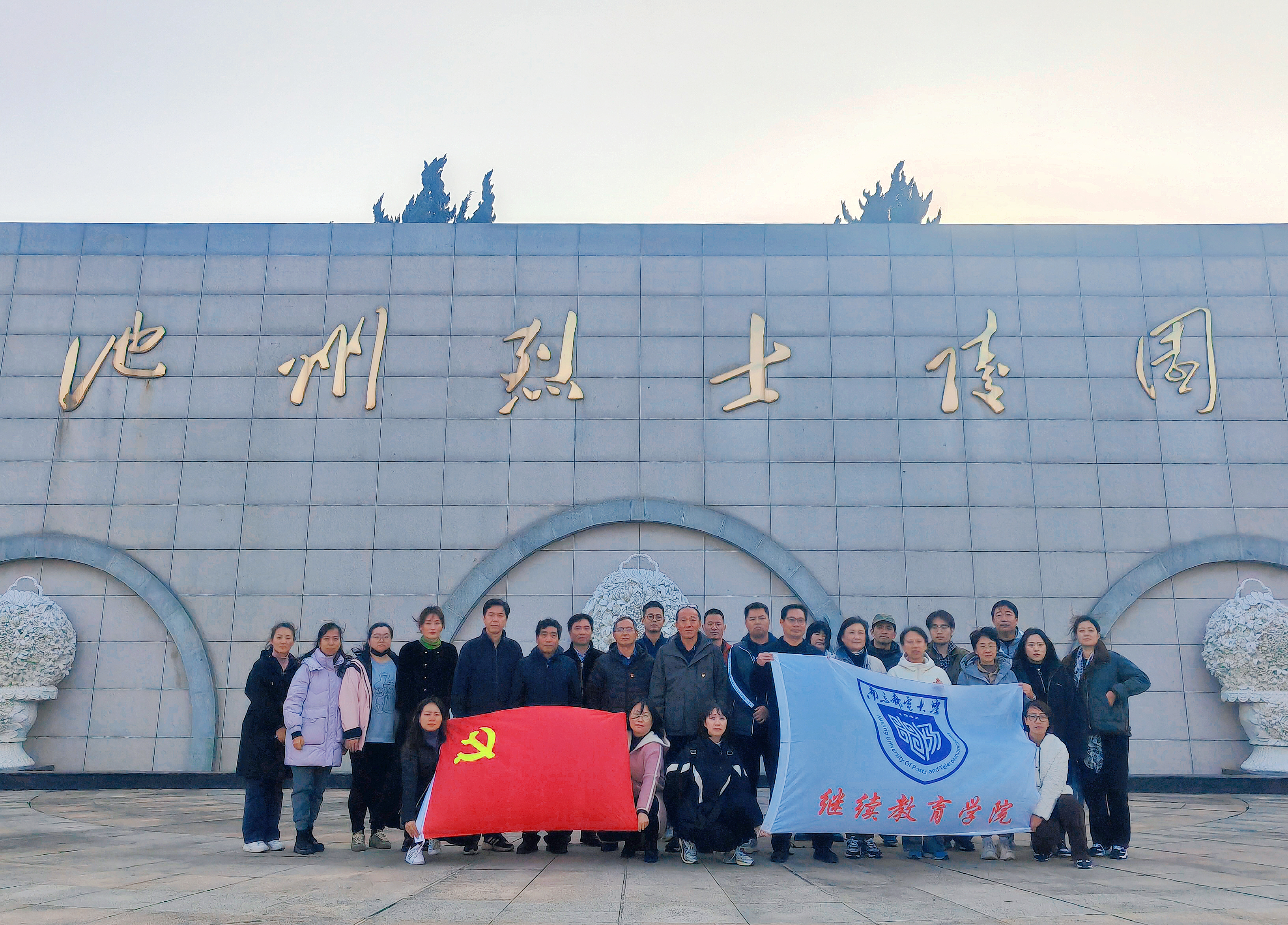 在池州烈士陵园,教职工们面对烈士纪念碑肃穆默哀,重温入党誓词。大家纷纷表示要继承和发扬革命先烈的高贵品质和优良传统,时刻牢记和践行一名教育工作者的职责使命,为科教兴国奉献力量。