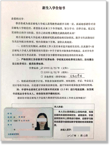 新生入学告知书