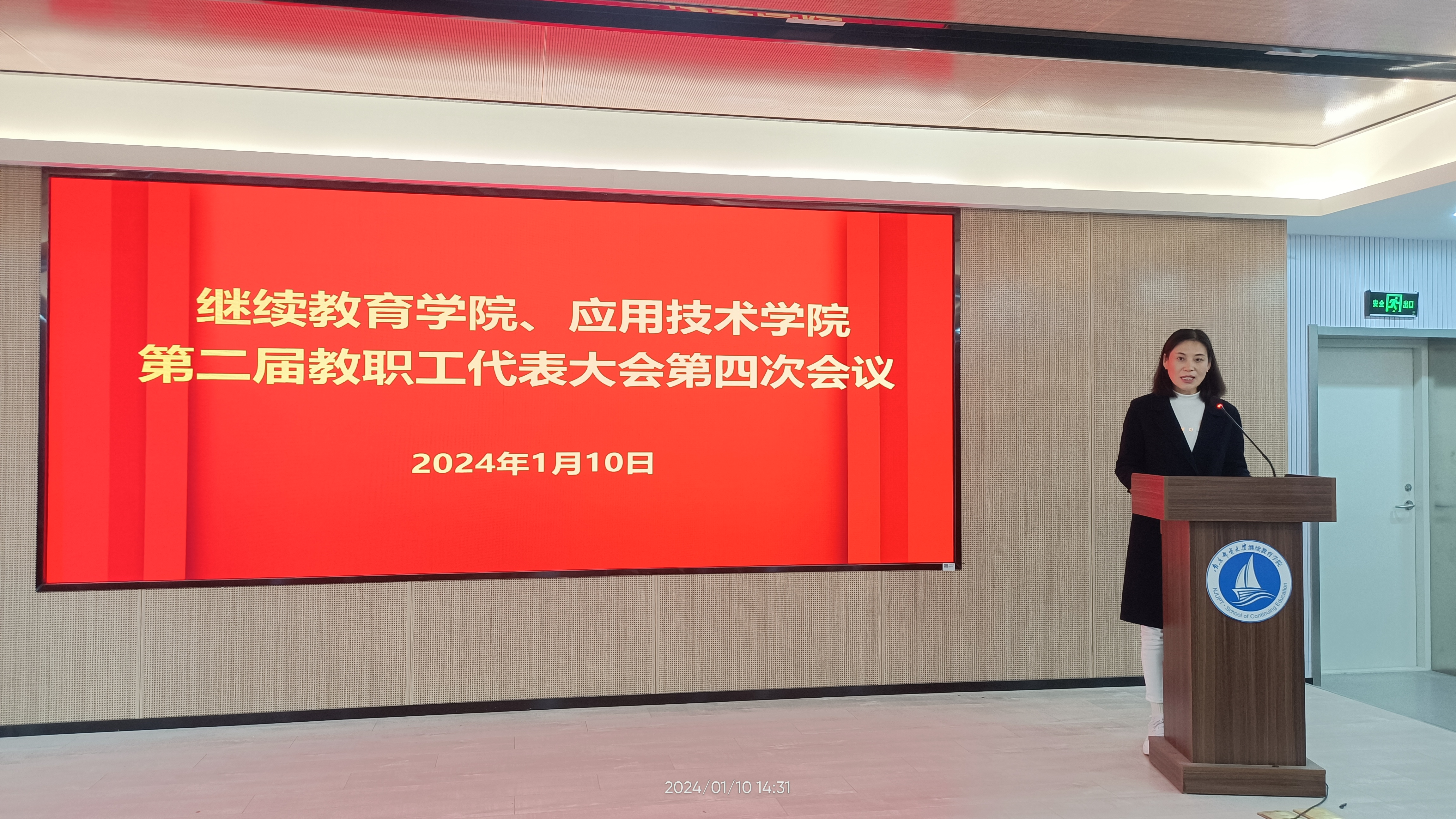1月10日下午,太阳成集团122ccvip、应用技术公司第二届教职工代表大会第四次会议在锁金村校区教学楼300教室召开,公司领导、在职教职工参加了会议。大会由太阳成集团122ccvip副经理秦桂娟主持。