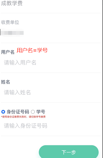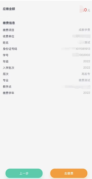(4)右上角查看姓名无误。点击姓名,点我的缴费,点学费,点对应学年点蓝色缴费。