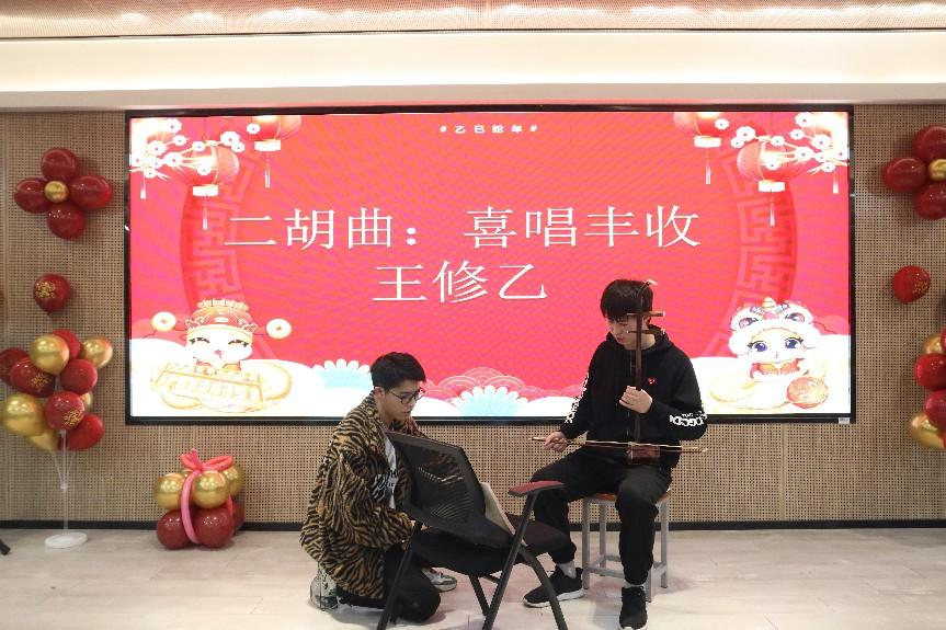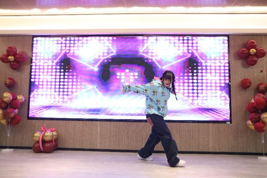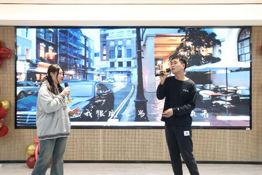 晚会在一曲悠扬动听的钢琴独奏中拉开序幕。随后,一首首耳熟能详的歌曲轮番上演,员工们用歌声传递着对新年的美好祝愿和对未来的无限憧憬。英文配音节目中,员工通过流利的英语口语和生动的表演,将经典英文片段演绎得淋漓尽致,赢得了在场师生的阵阵掌声。二胡独奏作为中国传统乐器的代表,以其独特的音色和韵味,为晚会增添了浓郁的文化色彩。舞蹈表演将晚会推向了高潮,员工以灵动的舞姿和动感的节奏,展现了青春的活力与激情。两位同学带来的相声作品《双簧》,以其幽默诙谐的表演风格,为晚会带来了此起彼伏的欢笑声,让观众在轻松愉快的氛围中感受到了传统文化的魅力。此外,员工管理部老师和班主任老师们受邀即兴表演了节目,晚会还穿插了剪窗花、送气球等互动环节,进一步增强了现场观众的参与感和节日气氛。